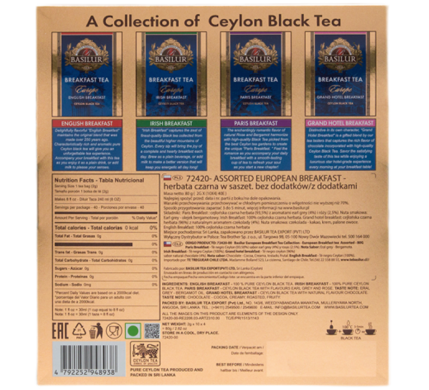 Чай "Basilur" "Европейский чай для завтрака". Ассорти 40 конв.
