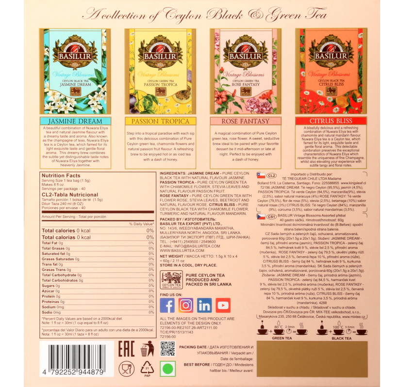 Чай "Basilur" "Винтажные цветы". Ассорти 40 конв.