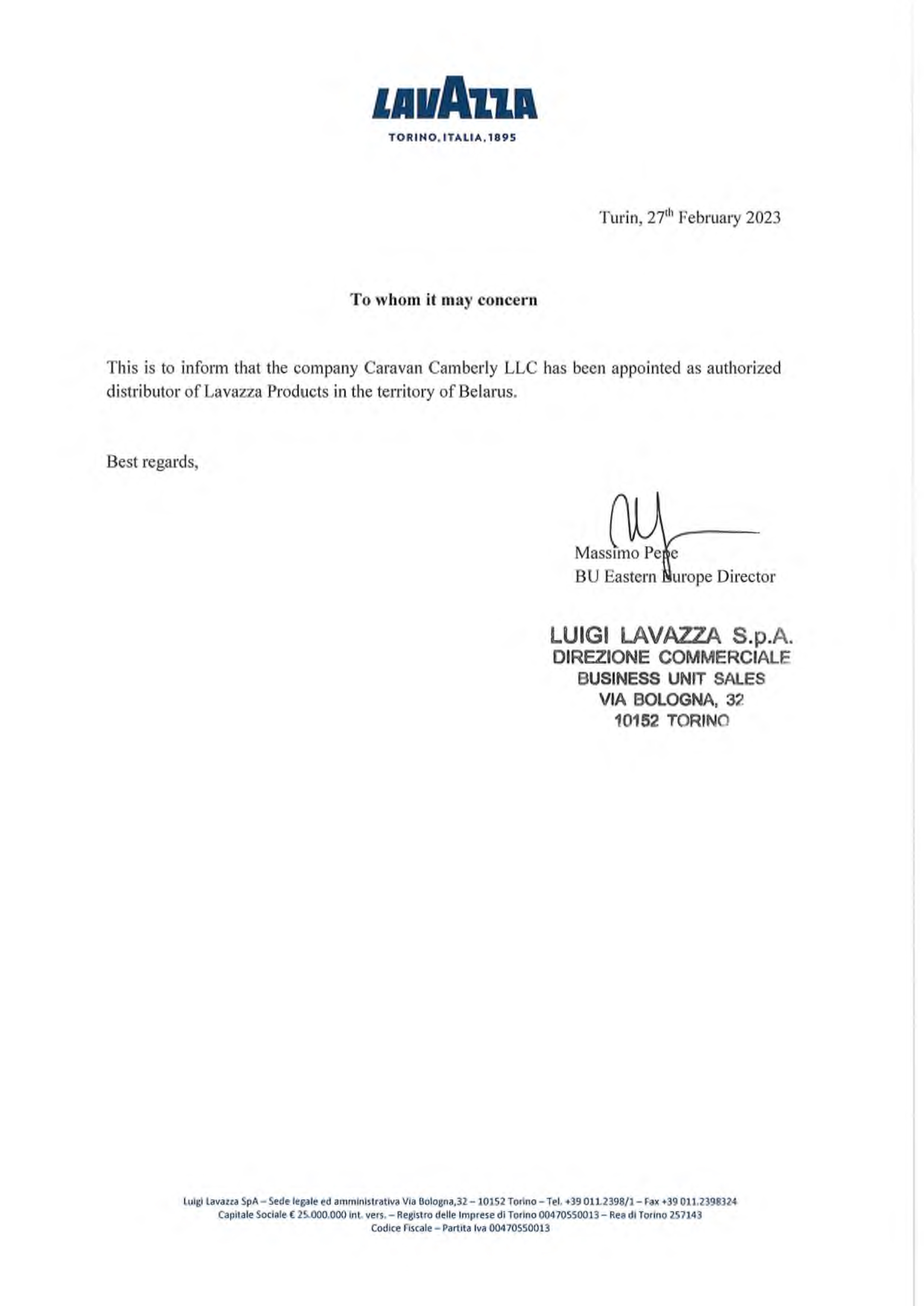 Общество с ограниченной ответственностью "Караван Камберли". Зарегистрировано 26.02.2002 решением МИД №225, рег. номер 800013191. Юридический адрес: 223141, Минская обл., г. Логойск, ул. Тимчука, д.1а, пом. 96.