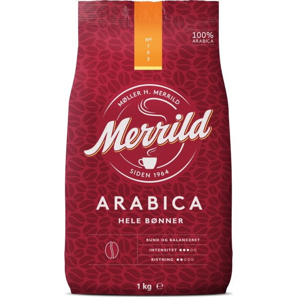 Зерновой кофе Merrild Arabica сочетает в себе прекрасный вкусовой букет кофейных зерен созданных путём смешивания высушенных на солнце зёрен кофе Арабика, выросших в тропических регионах.